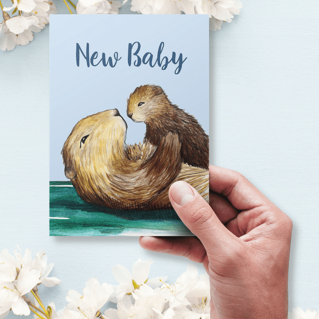Handmade Wildlife Greetings Card - New Baby Otters